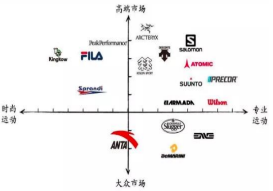 以FILA作为参考蓝本,安踏集团从运动项目、品牌定位、价格区间差异这个思路又陆续收购并购了滑雪品牌DESCENTE、网球运动品牌WILSON、健身品牌PRECOR、越野跑及滑雪品牌SALOMON以及号称“户外爱马仕”的顶级户外品牌ARCTERYX(始祖鸟),构建了横跨专业运动、时尚运动和户外运动三大领域的品牌矩阵。