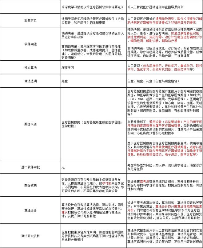 《人工智能医疗器械注册审查指导原则》与《深度学习辅助决策医疗器械软件审评要点》关键增量信息对比