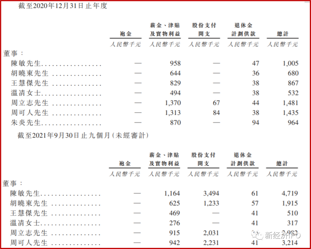 招股书显示,陈敏与胡晓东的薪水不高。2020年,陈敏年薪约100万元,胡晓东的薪水约68万元;2021年前三个季度,陈敏薪水116万元,股份支付形式获得报酬349万元;胡晓东的薪水约63万元,股份支付形式获得报酬约123万元。