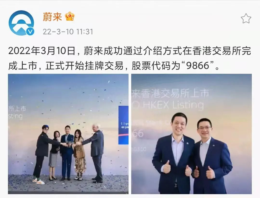 对于蔚来加速上市,其实也可以从“蔚小理”三家启动港股二次上市的时间节点看出。