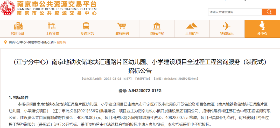 值得一提的是,就在前几天,南京市公共资源交易中心网站正式发布仙林汇通路片区幼儿园、小学建设项目官方的招标公告,这意味着汇通路板块教育资源配套有了实质性进展,对周边的居民无疑是一个利好消息!
