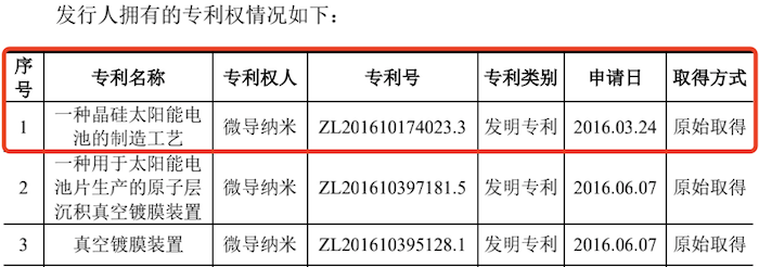 截至招股书签署日,微导纳米共拥有11项发明专利,上述提到的“一种晶硅太阳能电池的制造工艺”是公司11项发明专利之一,于2016年申请。