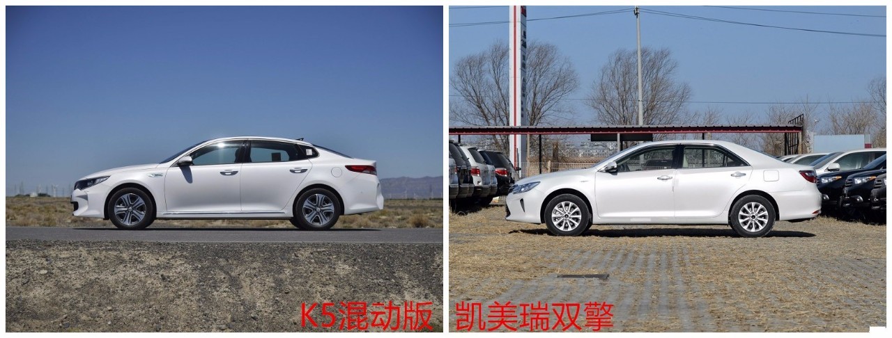 K5混动版与普通版保持一致,车身尺寸长宽高分别为4855mm/1860mm/1475mm,轴距为2805mm。凯美瑞双擎的车身尺寸长宽高分别为4850/1825/1480(1505)mm,轴距为2775mm。
