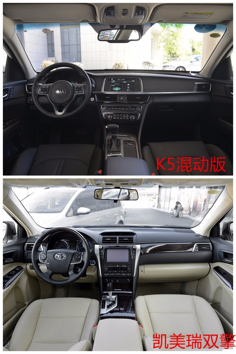 在细节上,日系韩系车一向都不吝啬自己的用心,这从二者的储空间设计可见一斑,随手可得的储物空间,让驾驶者和乘坐者都非常方便。不过,在车身尺寸方面,相比K5混动,凯美瑞双擎就稍显不足了,但乘坐空间的充裕又弥补了这点。