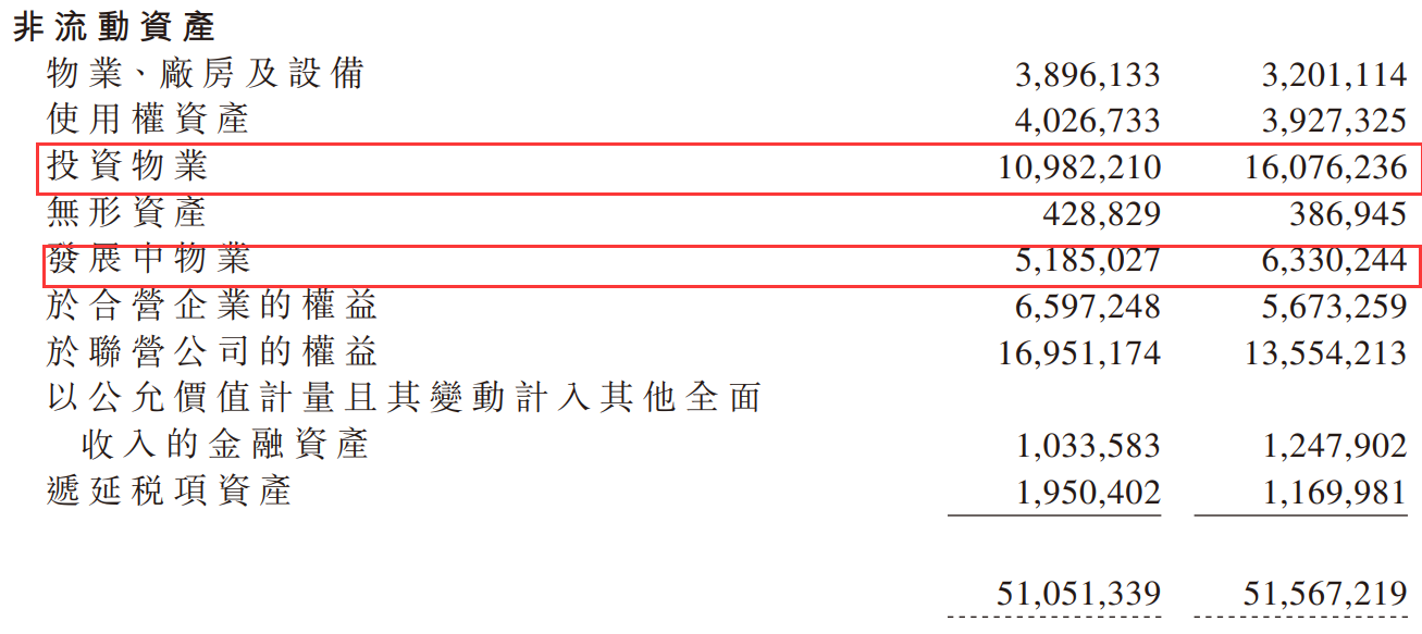 资产数据杠杆游戏接着谈一谈,2021年越秀地产的非流动资产略有下滑,为510.5亿元,上年同期是515.7亿元。具体来看,主要是投资物业、发展中物业下降了一些,同比降幅分别为31.7%、18.1%。