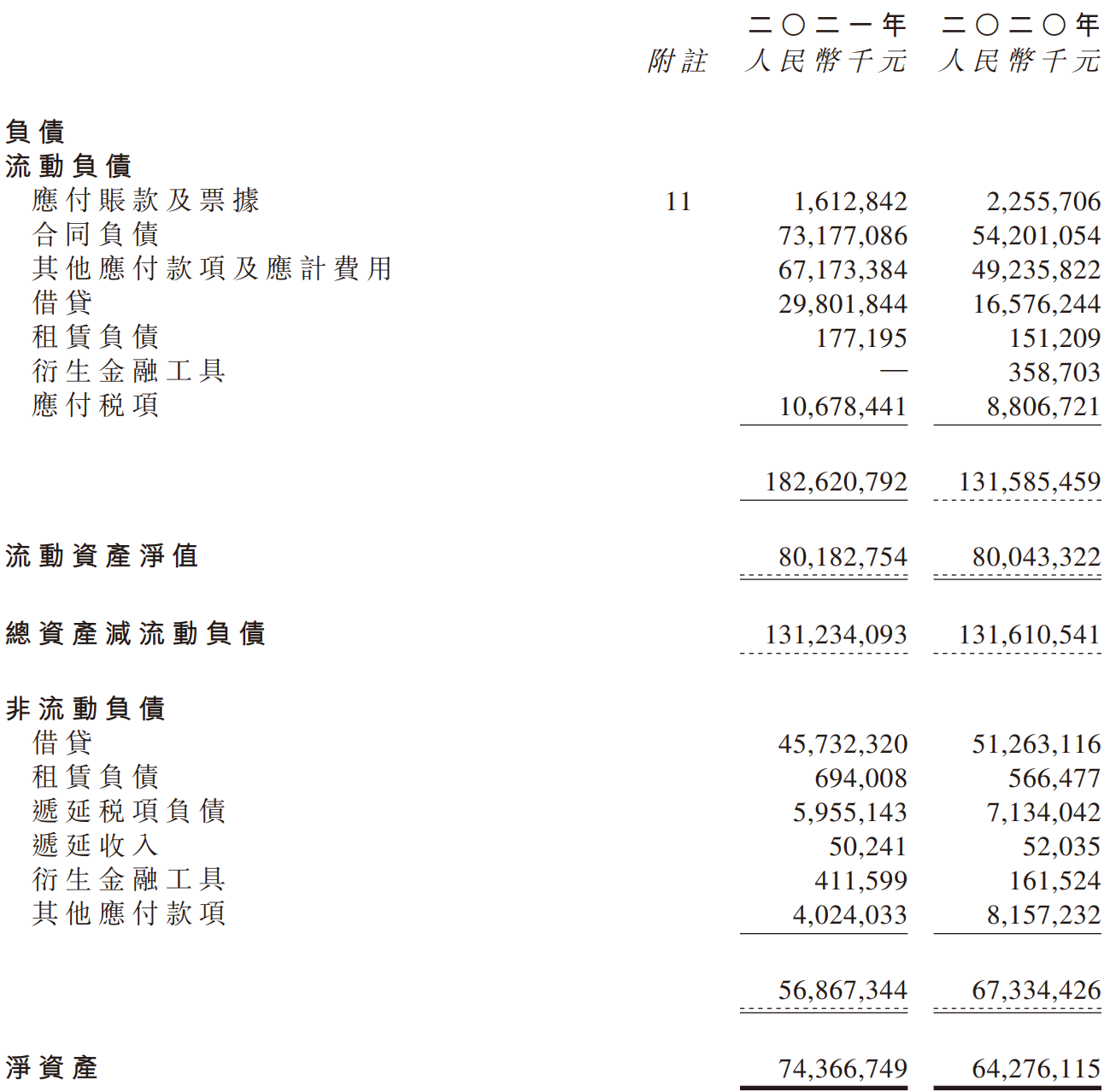 2021年,越秀地产的流动负债增加了500多亿,为1826.2亿元,剔除合同负债后为1094.4亿元。杠杆游戏简单计算了下,去年同期这一数据为773.8亿元。剔除合同负债后,其流动负债同比增加了大概320.6亿元,主要是其他应付款及应计费用、借贷、应付税项的增加,分别同比增幅为36.4%、79.8%、21.3%。