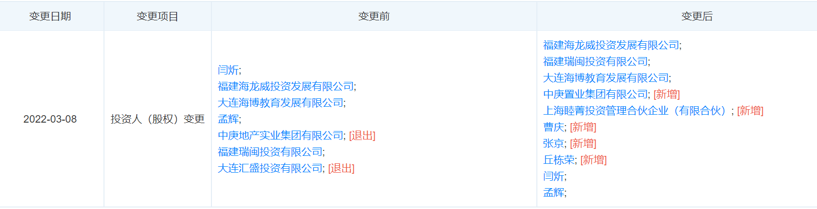 此次新进的企业股东——中庚置业集团有限公司, 则是由原股东中庚地产实业集团有限公司更名而来。2020年7月10日,中庚地产实业集团有限公司更名为中庚置业集团有限公司。