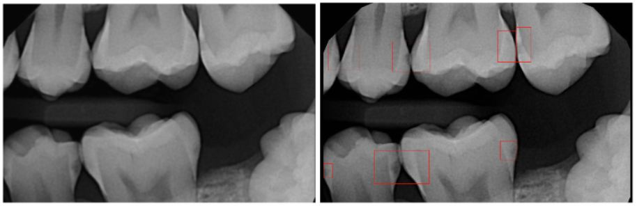 在口腔医疗领域,AI应用最为广泛的也是跟阅片检测相关。拿患病率最高的龋齿来说,传统的诊断依靠X 射线牙片及直接的口内检查,以此发现咬合龋。但对于牙齿根部的龋齿、临间龋和根面龋等潜在龋齿,难以发现,容易漏诊。辅助龋齿检测的AI模型可以代替医生对牙片进行精准的龋齿侦查,这种专项的AI模型对龋齿斑的敏感度高于人类有限的视力。