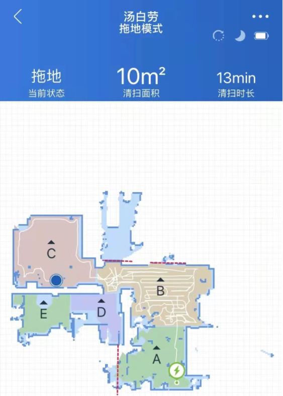慢慢地,我便开始定期检查“汤白劳”的工作情况。果不其然,刚过去一周多,又被我抓住了它的“摸鱼”现场。A区没打扫完,就跑到下一个区域去了,“机赃并获”的情况下,我直接“惩罚”不许充电,再将屋子重新打扫一遍。