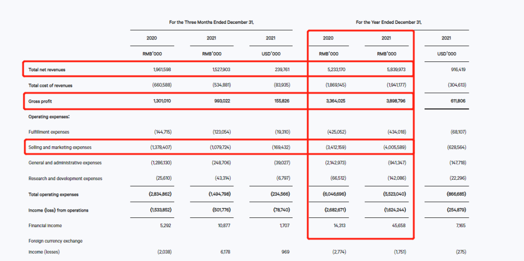 但逸仙电商仍未摆脱营销费用高企的窘境,销售与市场费用从2020年34.1亿元上升至2021年40.06亿元,同比增长17.4%。财报解释,2021年销售与营销费用的增长,主要是因为线下门店的优化及品牌建设,但针对线下的收入情况,财报却只字未提。