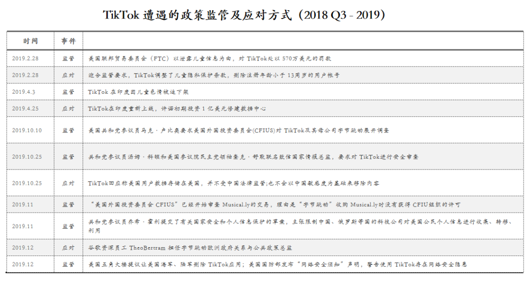 Tik Tok在美国市场的发展历程可谓说是一波三折,2017年11月,字节跳动以10亿美元Musical.ly时,由于该项收购案未经美国外国投资委员会审核许可。2019年时,遭到美国外国投资委员会调查。