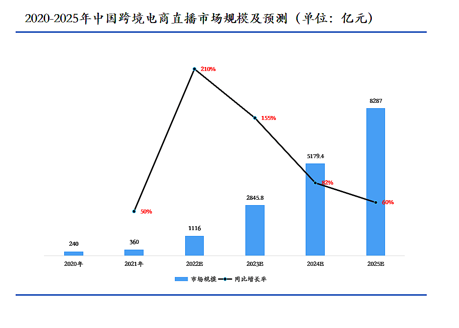 而据艾媒咨询发布的数据来看,我国跨境电商直播的市场份额将在2025年突破8287亿元,其增长速度也远高于国内直播电商的增长速度。跨境直播,也成为当下和未来的新风口。