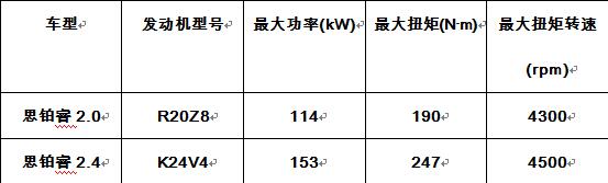 作为对比,思铂睿的自然吸气发动机数据如下: