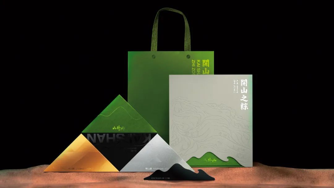 开启“开山之粽”礼盒后看到四座“山形粽”映入眼底。分别是:金山粽、银山粽、江山粽、青山粽,以及一个“盲盒山”。这四个“山形粽”分别有各自的山相。即:开启金山粽聚财富;开启银山粽增健康;开启江山粽固事业;开启青山粽结情谊。并且在“开山之粽”礼盒中隐藏了一个山形开瓶器,取名:开山器(盲山盒),集成功能和文化,寓意:开启美好、开启健康、开启快乐。