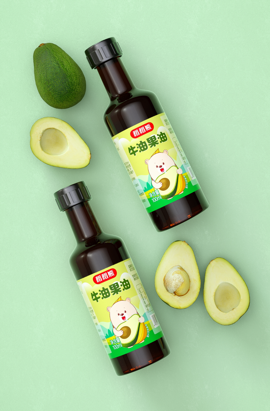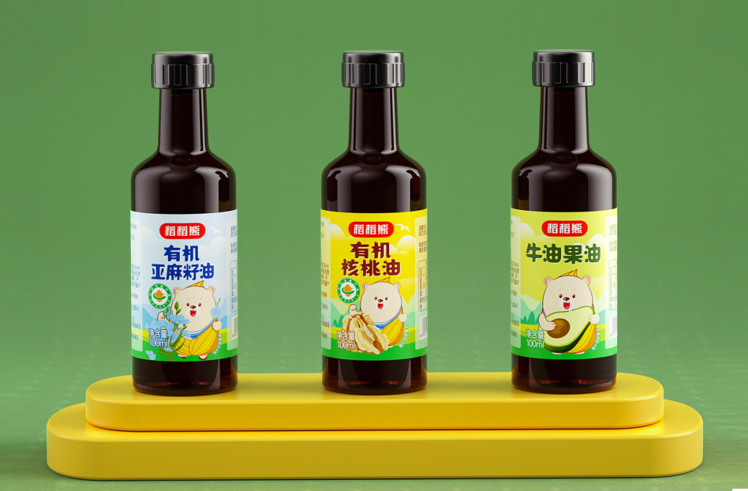 稻稻熊儿童食用油标签设计作品;图片来源:四川惠之源电子商务有限公司