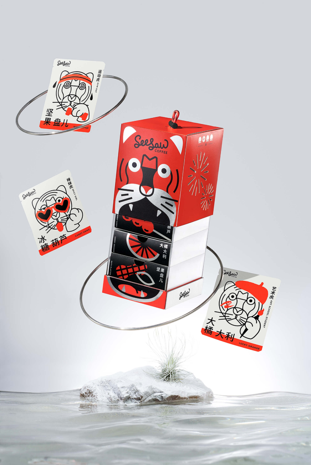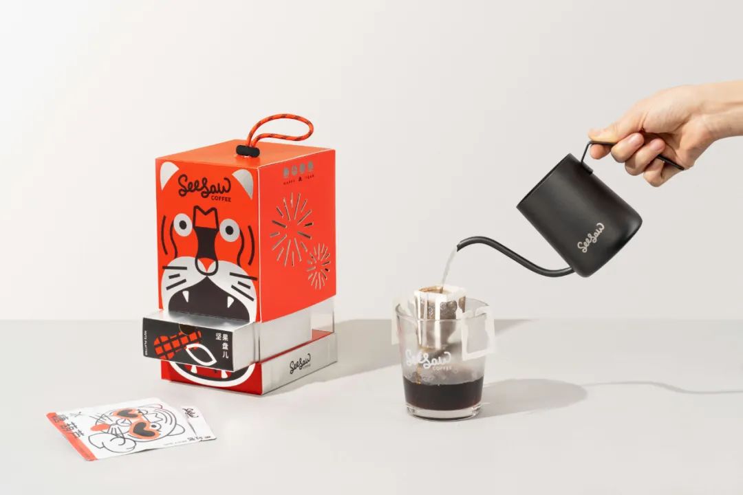 Seesaw 2022 “HU到了”虎年限定咖啡挂耳礼盒包装;图片来源:Seesaw Coffee