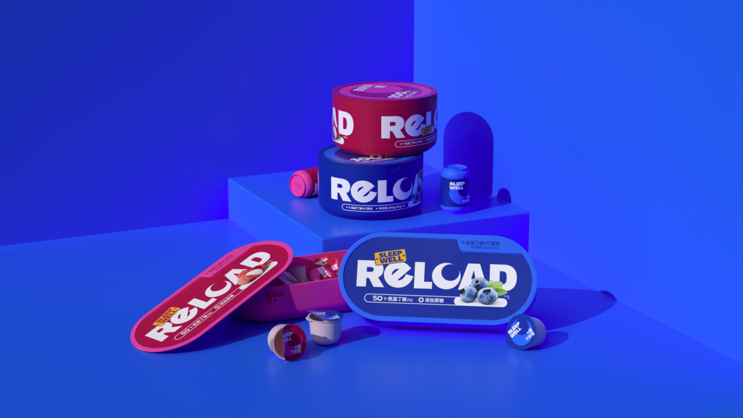 重新加载“RELOAD”是一款专门针对年轻人的助眠类功能性产品,品牌名“重新加载”也是从年轻人自身状态为出发点,生活中的焦虑和压力使得年轻人长时间处于怠机状态,需要重新加载一下清除缓存,重返正常的生活品质。区别于市场上大多数的胶囊类产品包装,舒适而高饱和色调的高级感外盒搭配助睡眠的水果图案,将产品“包装”得更接近于日常化,以此消除消费者在购买过程中的疑虑,形成信任背书。