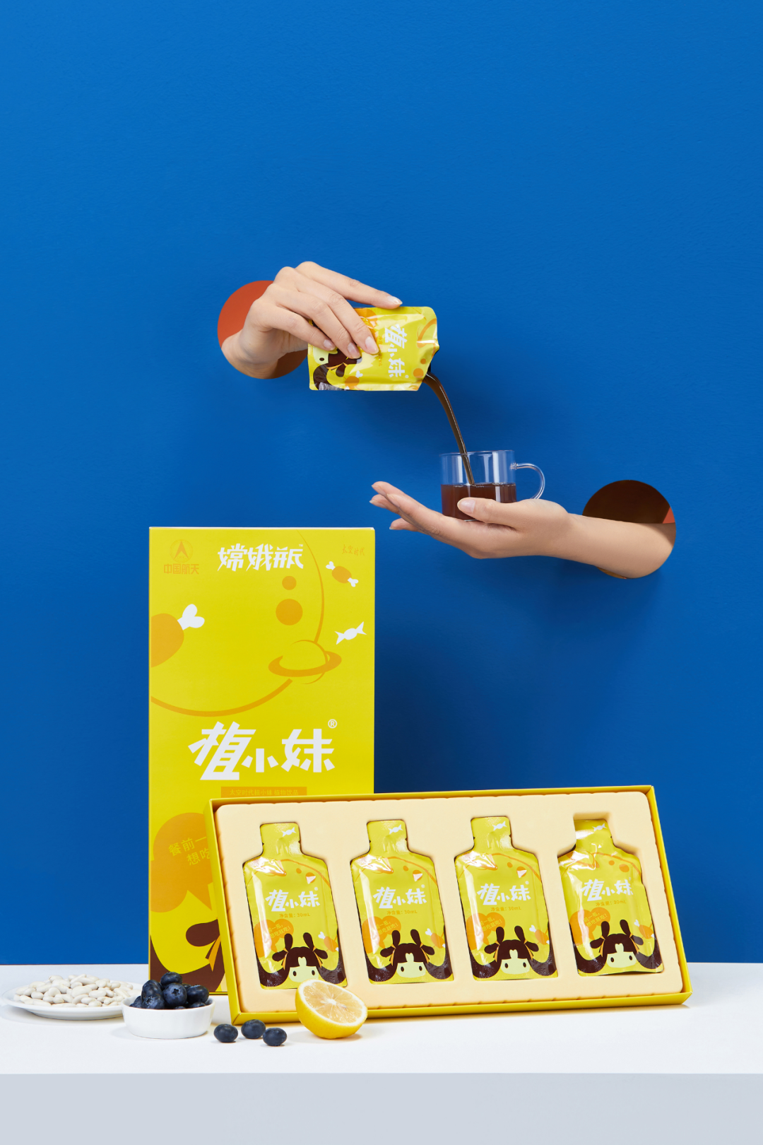植小妹产品具有航天生物背景,在包装上用可爱的插画描绘了中国传统神话中嫦娥的形象徜徉在由食物组成的宇宙中。同时也将嫦娥刻画为一个女性超级英雄,对抗各种食物带来的脂肪,让人们免于变胖的形象。这样每个用户耳熟能详的神话人物,拉近了产品和消费者的距离,与女性用户对美好形象和身材的向往相呼应。传达出产品功能性。