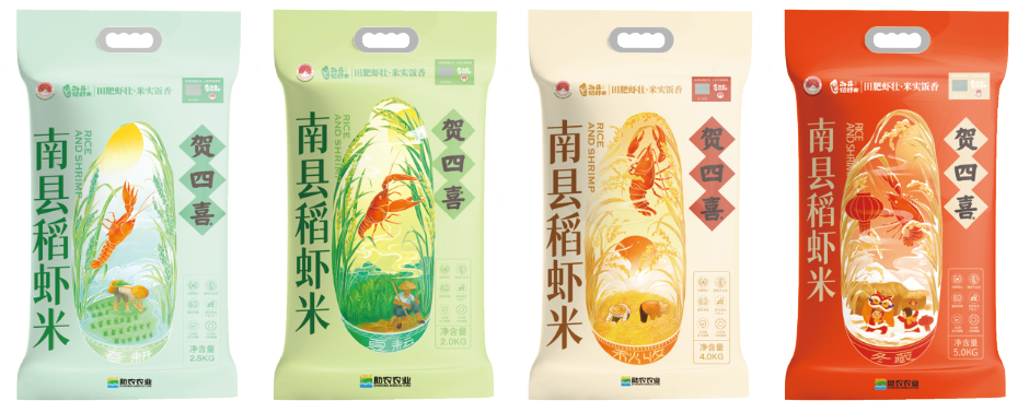 贺四喜·南县稻虾米 包装设计作品;图片来源:湖南助农农业科技发展有限公司