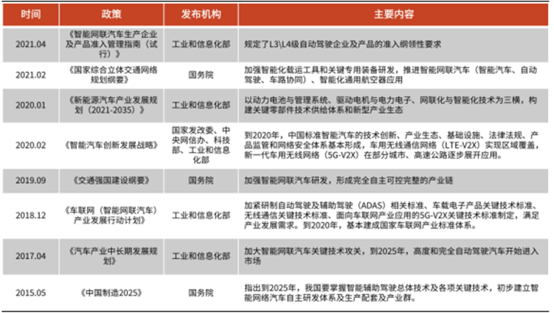 ▲截至 2021 年国家智能汽车相关政策