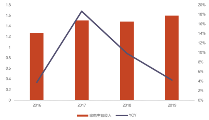 ▲我国家电行业主营业务收入变化(单位:万亿元)