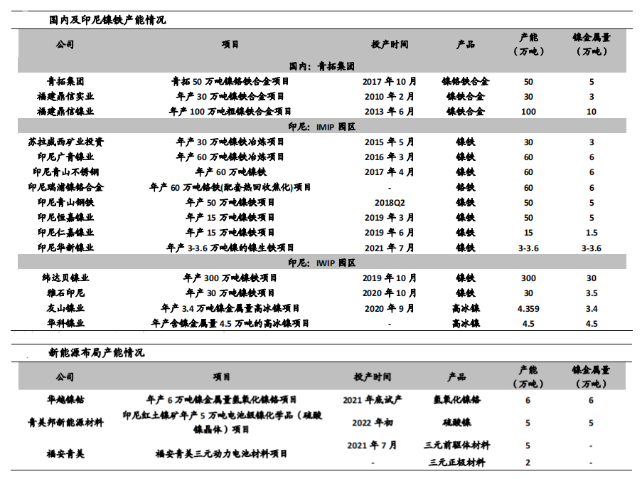 除青山控股外,力勤矿业、格林美、华友钴业、中伟股份等中企也均在印尼建有镍项目。