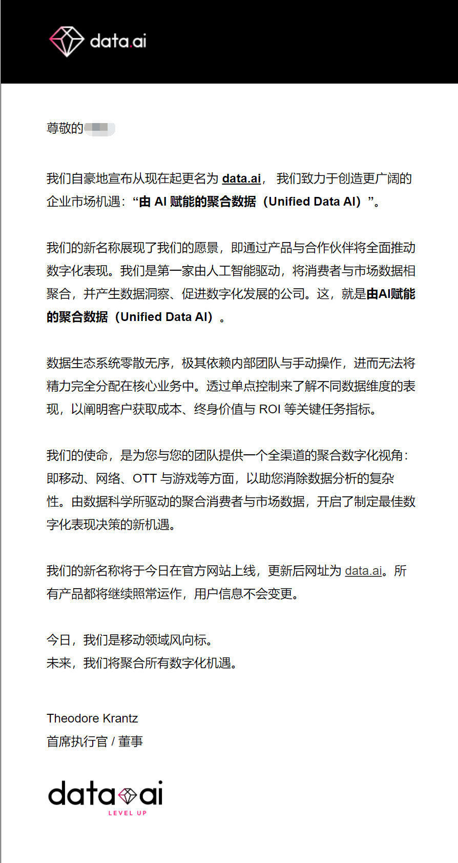 首先在强调更多互联网公司元宇宙布局及元宇宙新品牌的创立之外,我们先来说一则看起来与元宇宙无关的消息——知名数据分析机构App Annie近日宣布改名data.ai,定位是“由AI赋能的聚合数据”,宣称是第一家由人工智能驱动,将消费者与市场数据相聚合,并产生数据洞察、促进数字化发展的公司。
