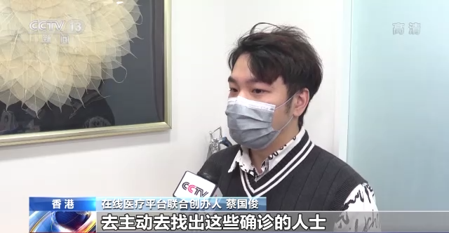 香港在线医疗平台联合创办人 蔡国俊:在公立医院那边其实那个负荷已经超载了,所以我们就希望通过我们医疗平台,连接线下一些私家私营医疗机构的医生,然后帮助(特区)政府去主动找出这些确诊的人士,给他们适当的治疗。我们帮他们安排了医生,然后问诊以后,他们的心就安定了。