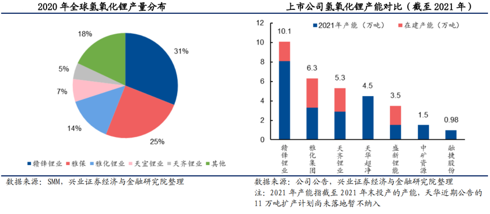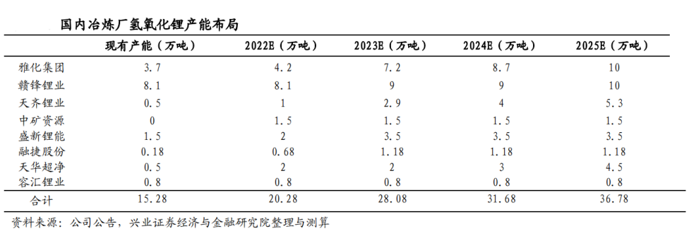 从国内产能布局来看,现有氢氧化锂产能15.28万吨,到2025年大概在36.78万吨,比起其他产业链环节动辄3倍、5倍的产能布局,4年1.4倍的氢氧化锂算是温和式的产能扩张了。