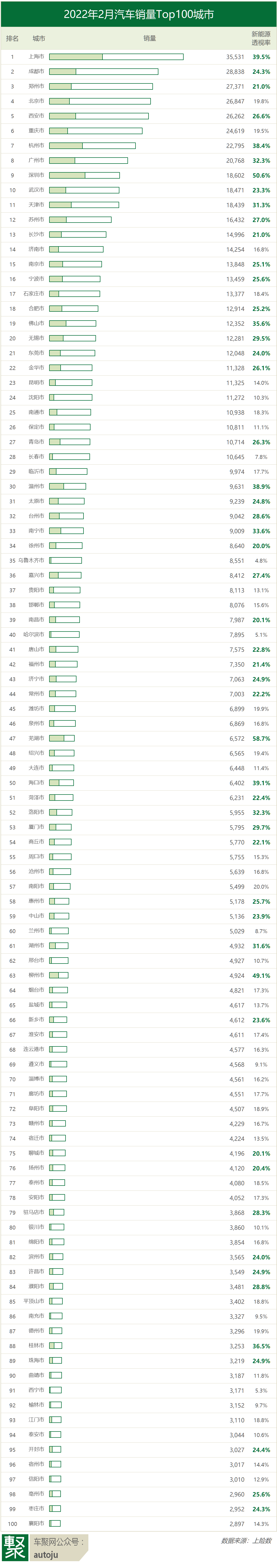 这与一线城市新能源需求逐渐进入饱和状态,以及疫情的散发令不少回乡人员选择本省就业等因素有关。重心的转移,这符合车聚君此前的预测,同时也再次建议车企,除了着眼在一线城市,还应该在三四线城市布局。