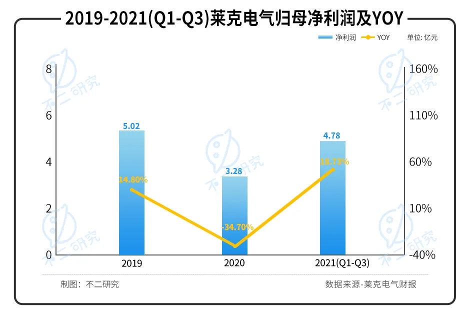从营收看,莱克电气似乎取得了不错的修复,但是再看净利润。据其财报显示,莱克电气2019年-2021年前三季度归母净利润分别为5.02亿元,3.28亿元,4.78亿元,分别同比增长18.73%,-34.70%,14.80%。