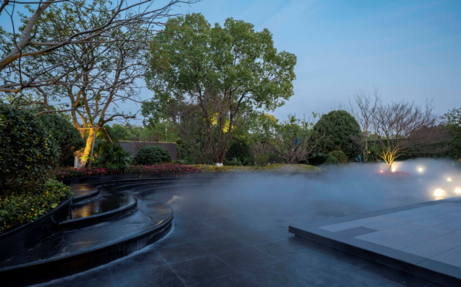 合肥龙湖紫云赋的园林景观,则更像是一幅靓丽的水彩画,“五维景观”的布局不仅仅是为了四季不变的美,还发挥着抑制细菌、隔绝噪音的生态功能,点缀了大气的徽派庭园。