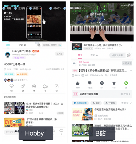 据了解,Hobby项目组内「想把这个项目媲美B站」。打开Hobby可以发现,该产品界面有着非常明显的、和B站相似的特征。