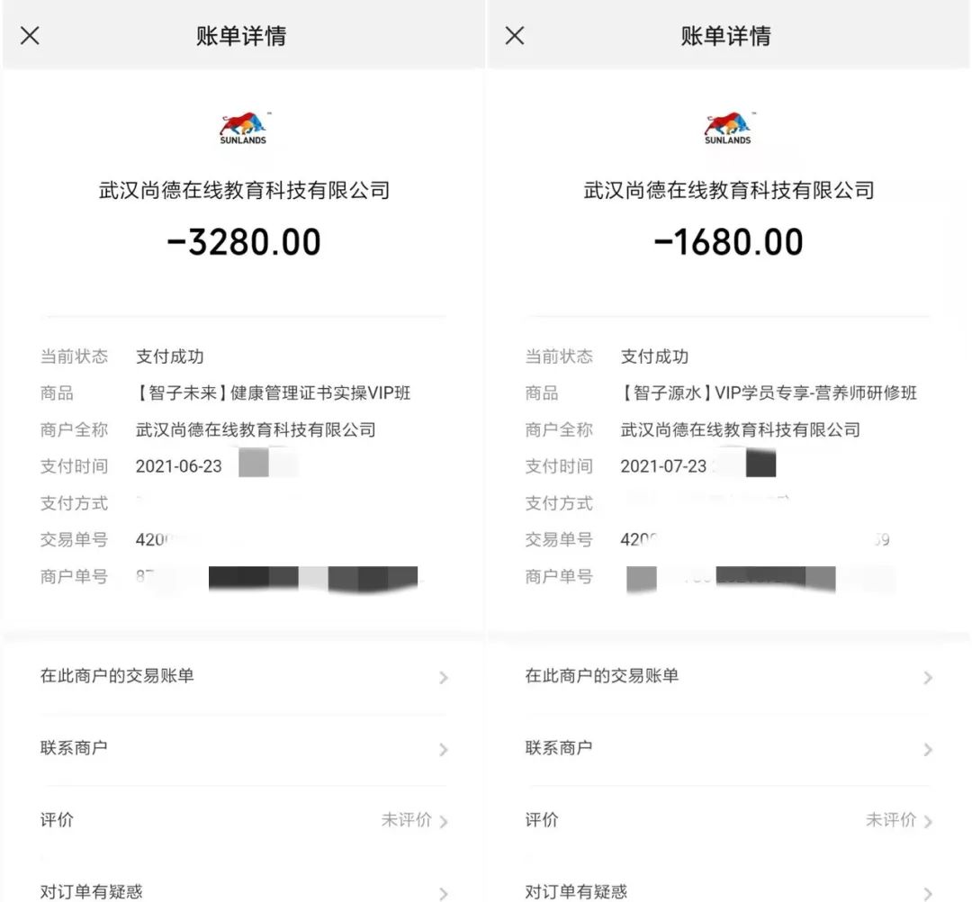 在老师的推荐下,丁雯在一个月内先后报名了3280元的“健康管理证书VIP班”、1680元的“VIP学员专享营养师研修班”。