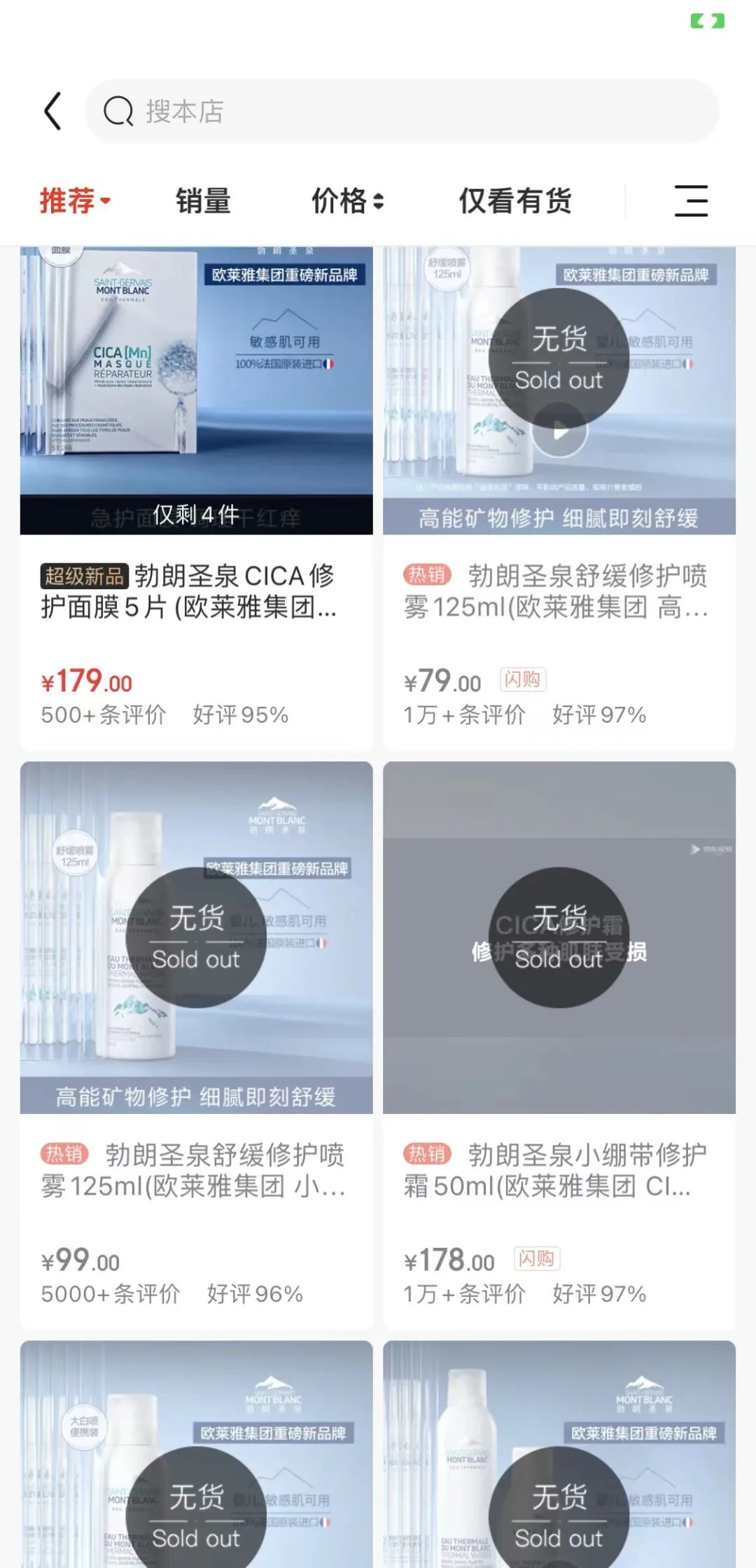 不过在该品牌京东自营店内,勃朗圣泉喷雾、小绷带修护霜、修护面膜等13款产品出现了“无货”的情况,其店内客服透露,具体补货或到货时间无法确定。