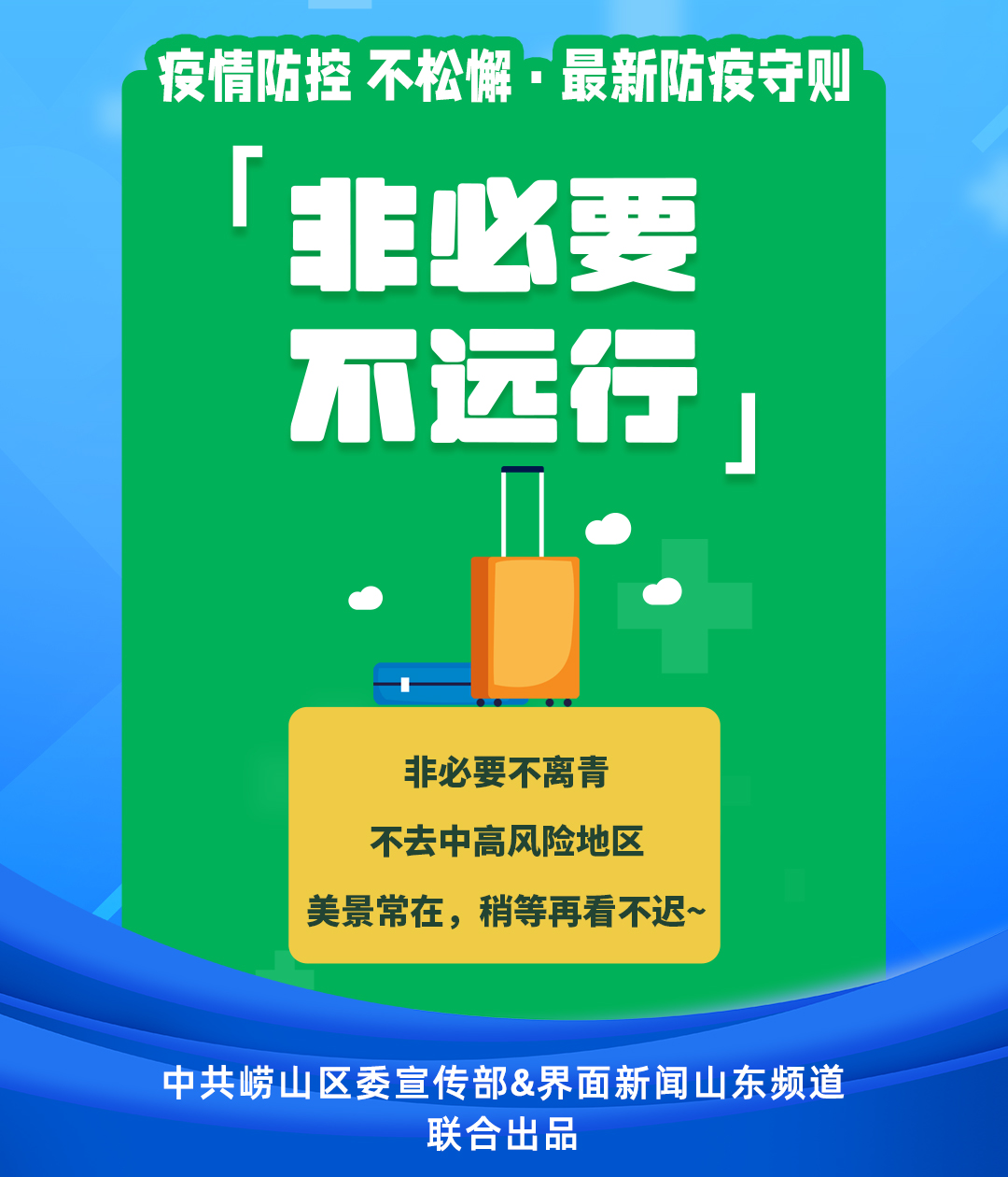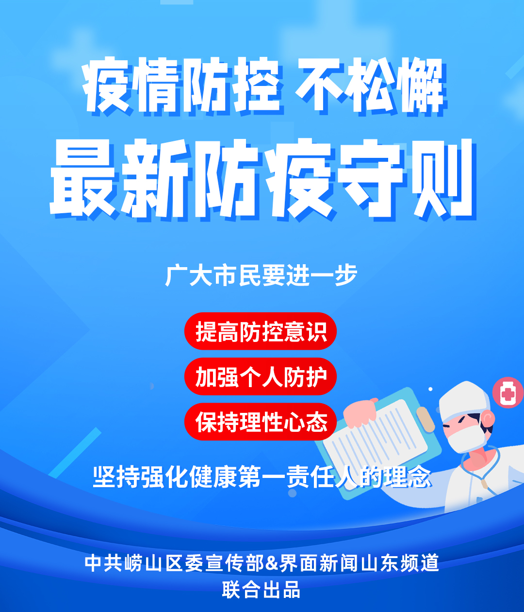 青岛市崂山区提醒广大市民,要进一步提高防控意识,加强个人防护,保持理性心态,坚持强化健康第一责任人的理念。