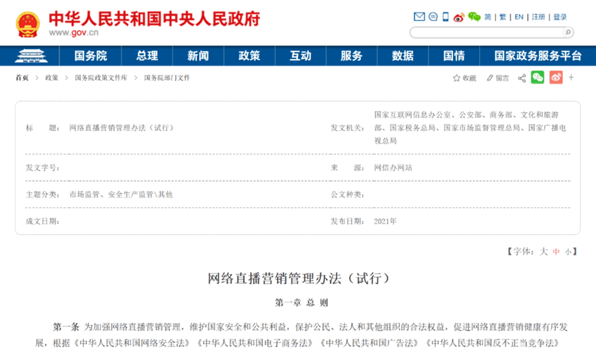 比如中国广告协会关于《网络直播营销行为规范》、以及国家广播电视总局《关于加强网络秀场直播和电商直播管理的通知》和《网络直播营销管理办法(试行)》以及其他相应政策的出台。