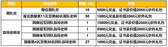 所有领队老师、指导老师均可获得价值2088元的软件礼包一份。