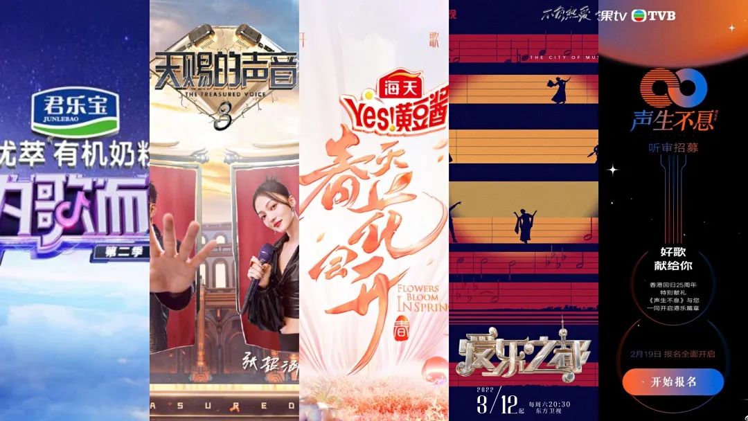 另外,还有像由抖音出品的《为歌而赞》第二季近期也举办了媒体看片会,进入了播出倒计时;以及芒果台将联合香港TVB联合打造《声生不息》港乐季即将开始录制,致敬香港回归25周年特别节目。
