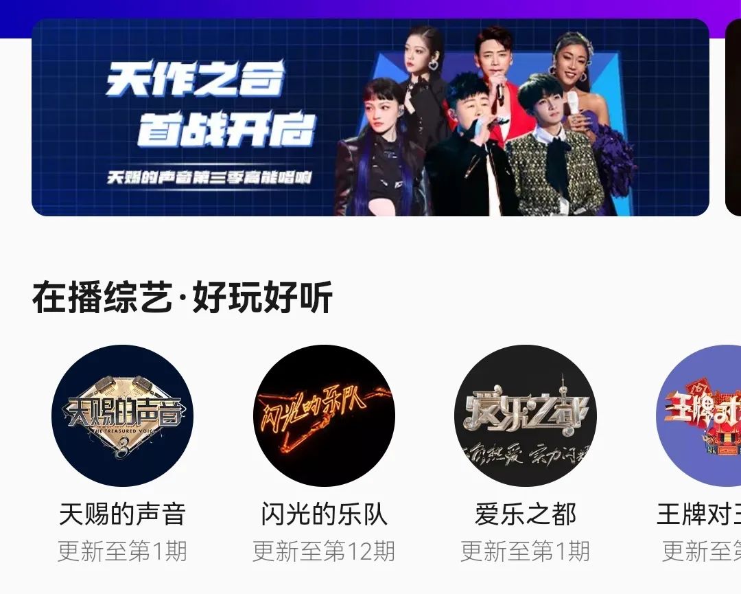 在当前市面上在播的音乐综艺中,腾讯音乐拿下了《天赐的声音3》《爱乐之都》等节目的音乐版权,另外刚刚收官的《闪光的乐队》同样也是腾讯音乐的版权。