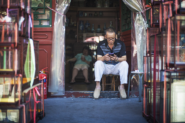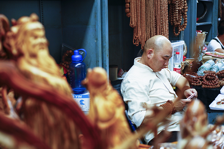 不像市场里的“潘二代”(潘家园商户二代),康珠还不怎么会用手机微信和支付宝收费。但她会非常信任顾客,让顾客摆弄她的手机,帮她收款,隐私一览无余也无所谓。
