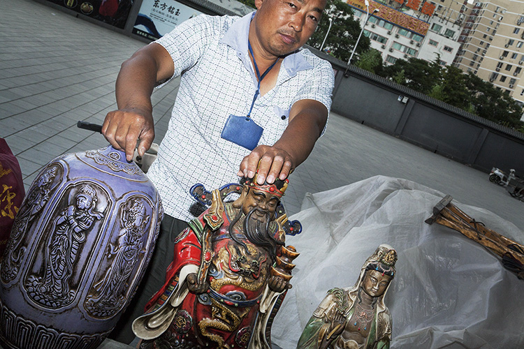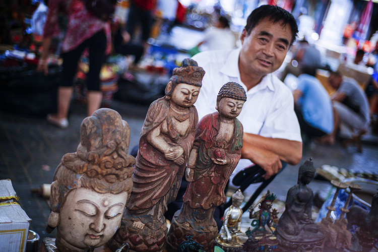 老李说,真正的古玩,要么在马未都这样的早期玩家手中,要么在拍卖行和富有的商人或者一些为官者手中。后来的潘家园旧货市场,更像是一个工艺品市场,大多数都是仿制品,价格在十元到几千元之间不等,顾客可以不费吹灰之力地砍下1/4的价格。
