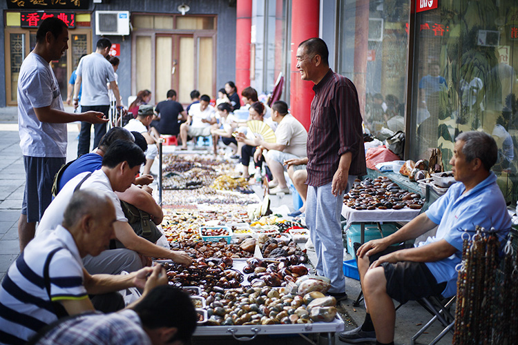 这个总面积达4万多平方米的旧货市场,像琳琅满目的夜市地摊:珠串、玉石、琥珀、根雕、铜钱、钧瓷茶器、袁大头银元、《包拯出世》这类三十年前的连环画小人书、还有雍正铜活字白纸印的《古今图书集成》……每个到潘家园的人,都很容易滋生出一股浓浓的怀旧之情。
