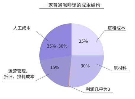 一般情况下,在一线城市开咖啡馆,人工成本在25%-30%左右,房租成本25%左右,运营管理、折旧、损耗成本15%左右,原材料成本在30%左右,普通咖啡馆能够收支平衡就不错了,如果算上老板的工资,大概率是亏损。