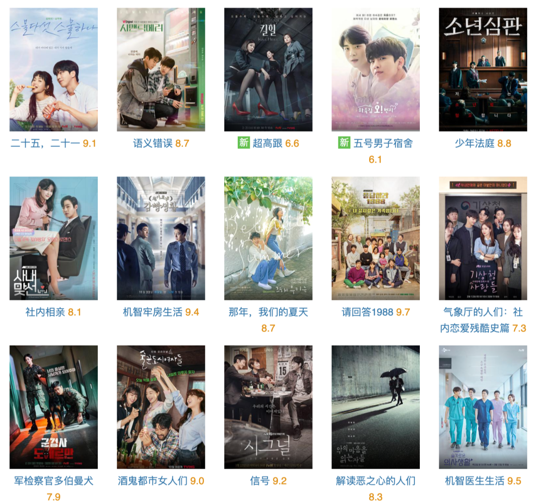 同时,多部口碑剧也被视频网站收入囊中,持续发力。温情剧《请回答1988》成为一大批观众冬天必须躲在被窝里二刷、三刷的佳作,悬疑剧《Signal》也成为天花板的存在,《奶酪陷阱》《任意依恋》等经典韩式言情剧收获无数少女心......