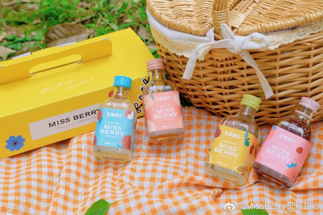 MissBerry贝瑞甜心则瞄准了女性人群,陆续推出小方瓶果酒系列、罐装气泡果酒、巧克力酒、咖啡酒,花草酒等多口味创意酒品,包装设计也是以女士香氛为灵感,满足闺蜜聚会、独居小酌等不同情景下女性多元化的饮酒需求。