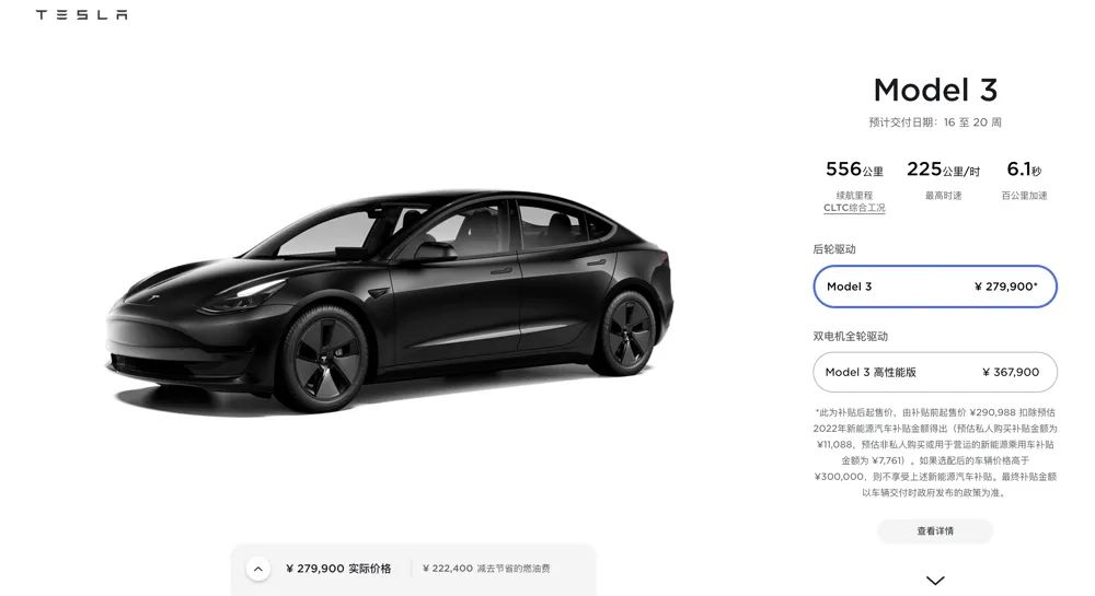 经过多次的价格调整之后,特斯拉中国在售的车型中就只有后驱版Model 3仍然可以享受到政策补贴。