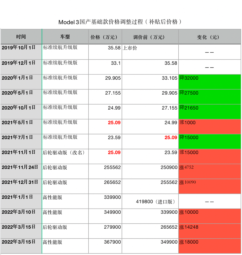 3月以来,特斯拉已经连续上调价格。就在3月初,特斯拉已经宣布过一次涨价,那时Model 3性能版、Model Y长续航版以及Model Y高性能版价格都上调了1万元。