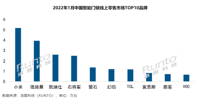 自2017年小米开启了智能门锁业务后,当年就拿下了线上销量第一的好名次。如今,其业绩规模长期保持在超过TOP6~TOP10的总和。