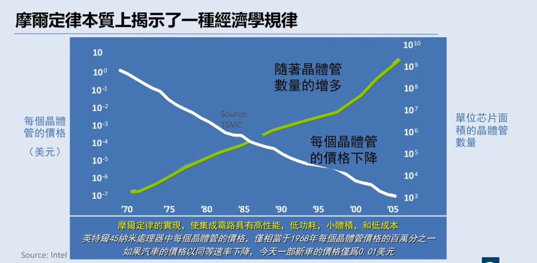 ▲摩尔定律的经济规律(图片来源:中国360度透视讲座,黄节PPT)